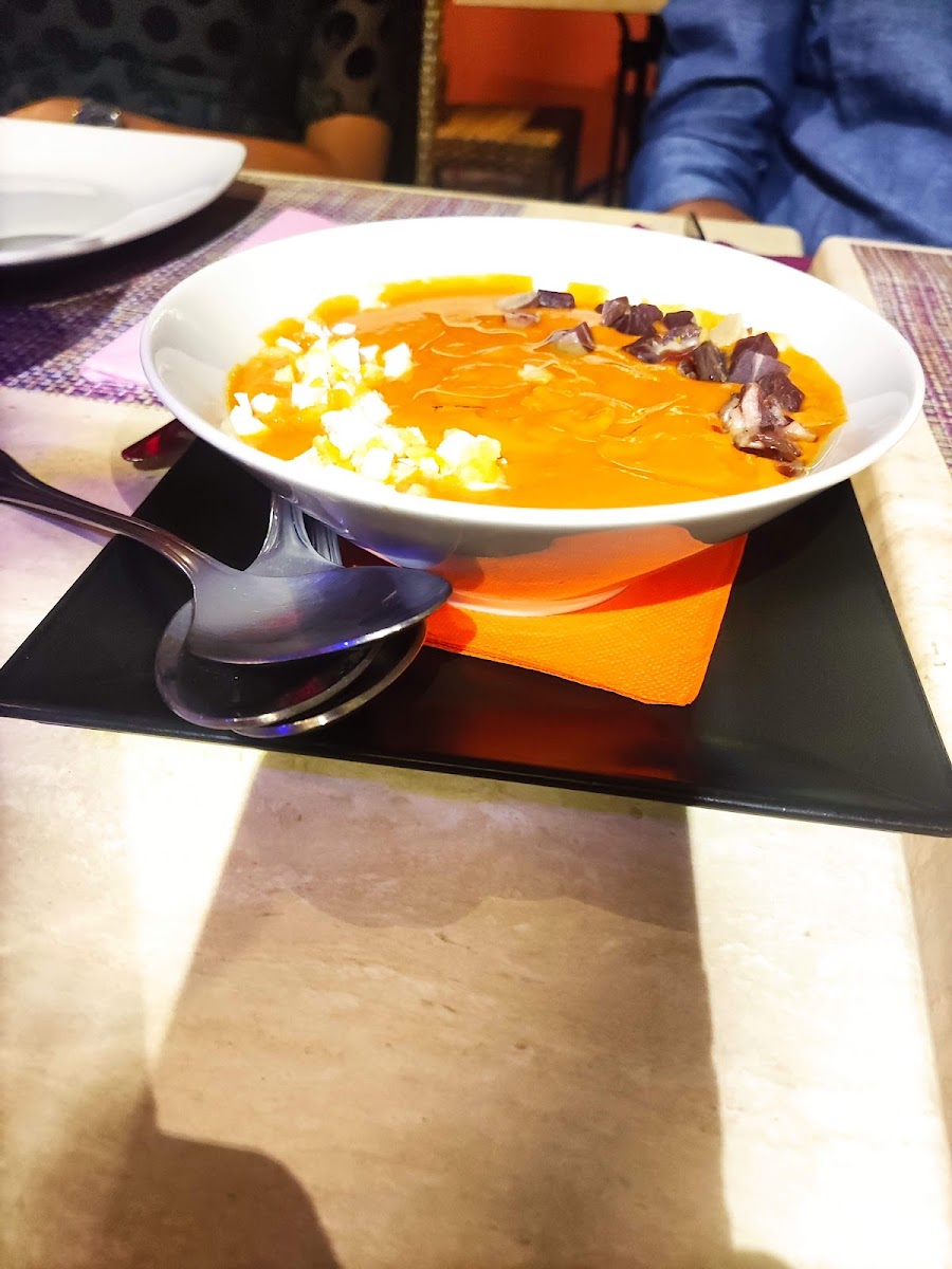 The menu is a feast for the senses. Begin your experience with Salmorejo Crema Fría de Tomate, a refreshing cold tomato soup garnished with exquisite Jamón Ibérico and hard-boiled egg for only €6.80. It's a traditional Andalusian dish that sets a delightful tone for your meal.